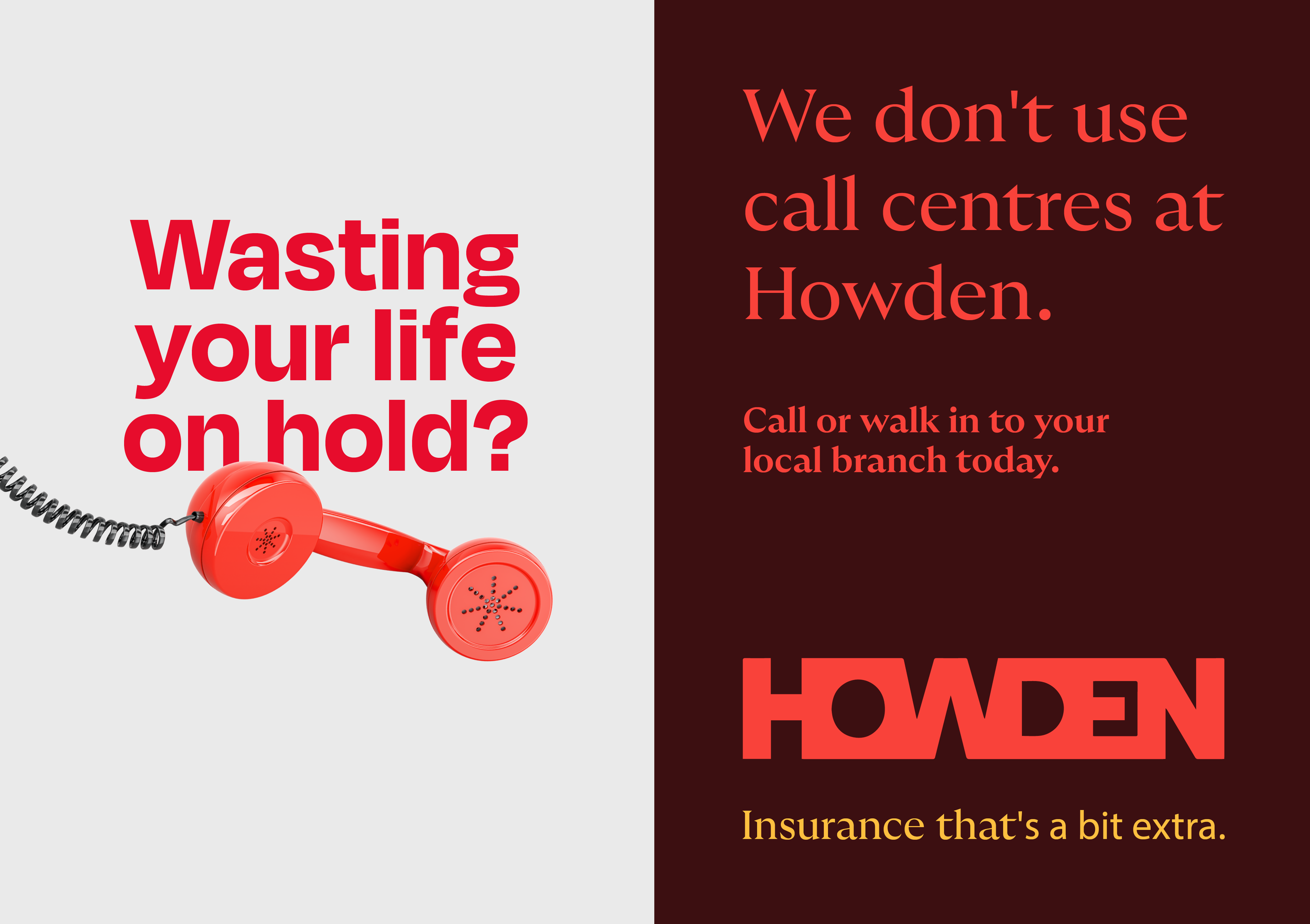 We took the core Howden identity and made it warmer and more approachable, dialing up the personal touch at every turn. We called out the frustrations people actually feel about insurance, and answered them with clear, honest promises—real branches, real people, advice you can trust. Every message and visual was designed to help Howden feel less like a faceless corporation and more like the helpful neighbour everyone wishes they had. And poked fun at some of the big players, why not be brave…
